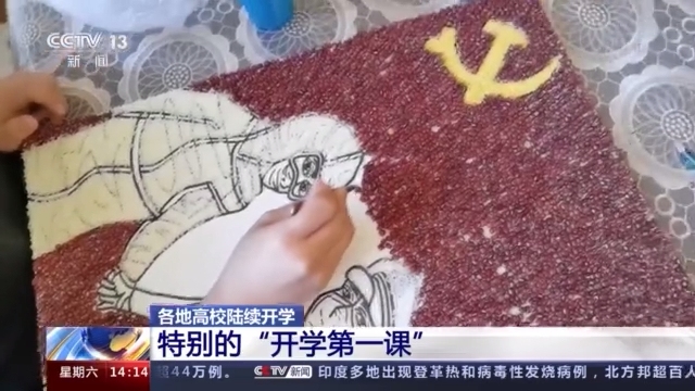 西北農(nóng)林科技大學(xué)新生用“五谷畫”抒發(fā)愛國心