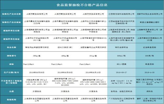 上海市場(chǎng)監(jiān)管局抽檢食品 全家三款便當(dāng)不合格