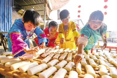 浙江省湖州市長興縣夾浦鎮(zhèn)丁新村聯(lián)合鼎甲橋中心小學,舉行傳統(tǒng)手工打年糕的制作,感受傳統(tǒng)習俗。