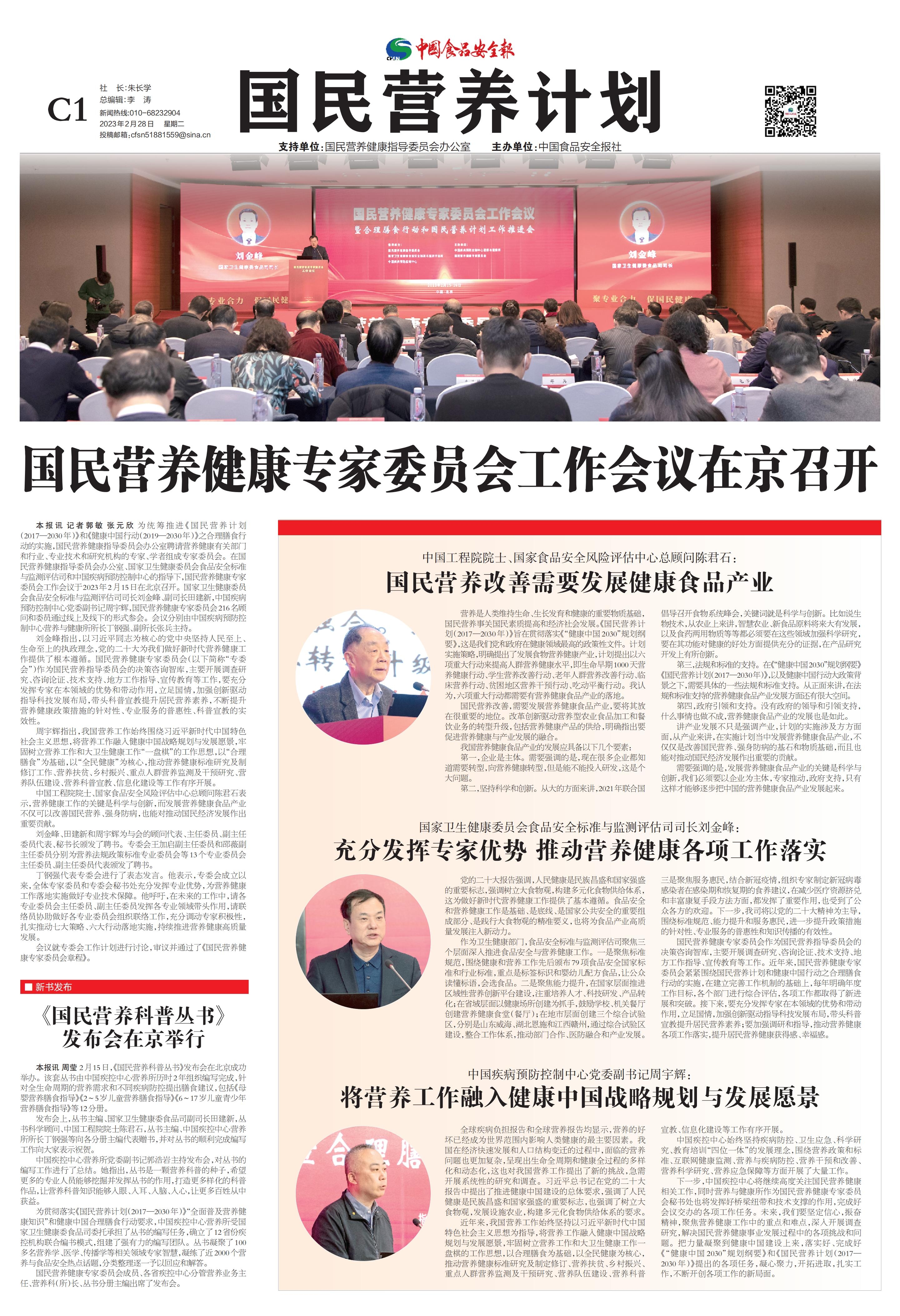 中國食品安全報第3729期國民營養(yǎng)計劃C1版