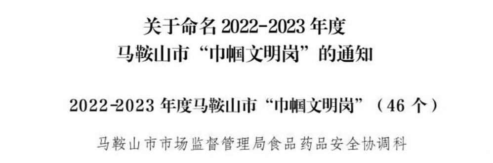 2022-2023年度馬鞍山市“巾幗文明崗”稱號(hào) 圖片來(lái)源:馬鞍山市市場(chǎng)監(jiān)督管局
