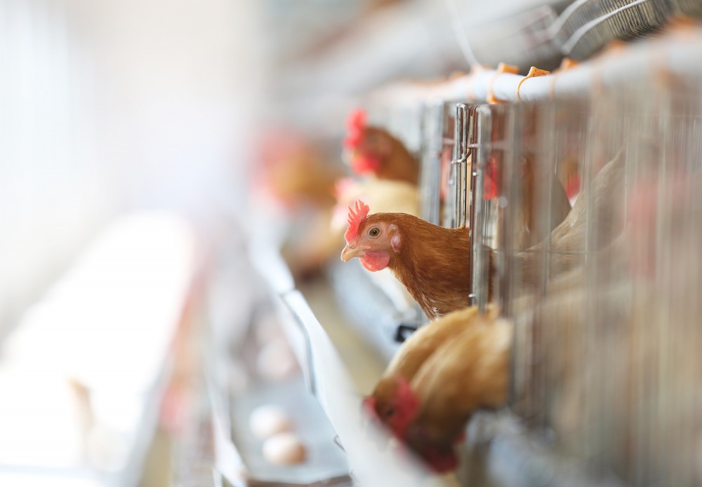 這么高的“雞樓”怎么飼養(yǎng)管理呢?“我們都有秘密武器?!敝烊粲裰钢u籠邊的一架“電梯”介紹,“這是雞蛋專用‘電梯’?!敝灰娝p輕按下開關(guān),剛剛產(chǎn)下的雞蛋在履帶上排好隊,坐上“電梯”,經(jīng)過一番自動噴霧消毒后,輸送到揀蛋房里,工人們直接裝箱。