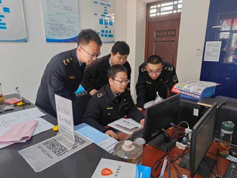 靈臺縣獨店市場監(jiān)管所執(zhí)法人員齊心協(xié)力辦業(yè)務 圖片來源:周志龍 攝