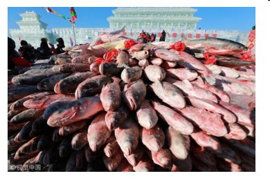 2018年12月28日,查干湖第十七屆冰雪漁獵文化旅游節(jié)開幕,來自全國各地的眾多游客參加了開幕式活動,游客們賞冰燈,看冬捕。開幕式現(xiàn)場好不熱鬧,眾多大魚堆城墻,供游客夠買,拍照留念。