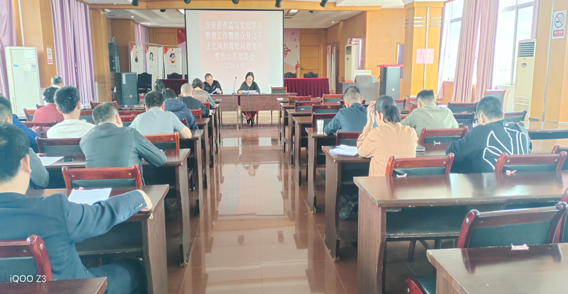 中國食品安全網(wǎng)訊(吉安縣市場監(jiān)督管理局 余小毛 廖秋珍) 4月19日,江西吉安縣市場監(jiān)管局召開會議,傳達學習習近平總書記關于黨紀學習教育的重要講話、重要指示精神和中央黨的建設工作領導小組、省委常委會、市委常委會、縣委常委會研究部署黨紀學習教育會議精神以及中央紀委、省紀委省監(jiān)委關于群眾身邊不正之風和腐敗問題集中整治動員部署會精神。按照縣委統(tǒng)一安排,部署開展黨紀學習教育、群眾身邊不正之風和腐敗問題集中整治工作。