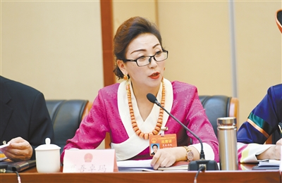 我省全國(guó)人大代表夏吾卓瑪在發(fā)言。祁國(guó)彪攝