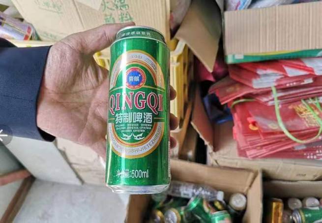 查處的“青麒牌特制啤酒”?圖片來(lái)源:青島市市場(chǎng)監(jiān)管局