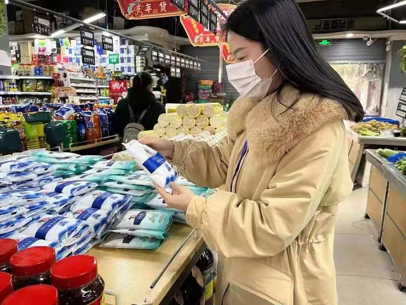 執(zhí)法人員檢查商超產品?圖片來源:都江堰市場監(jiān)管局