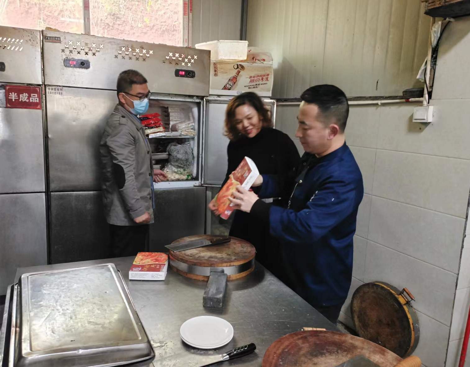 執(zhí)法人員檢查后廚冰柜?圖片來源:南充市順慶區(qū)食安辦