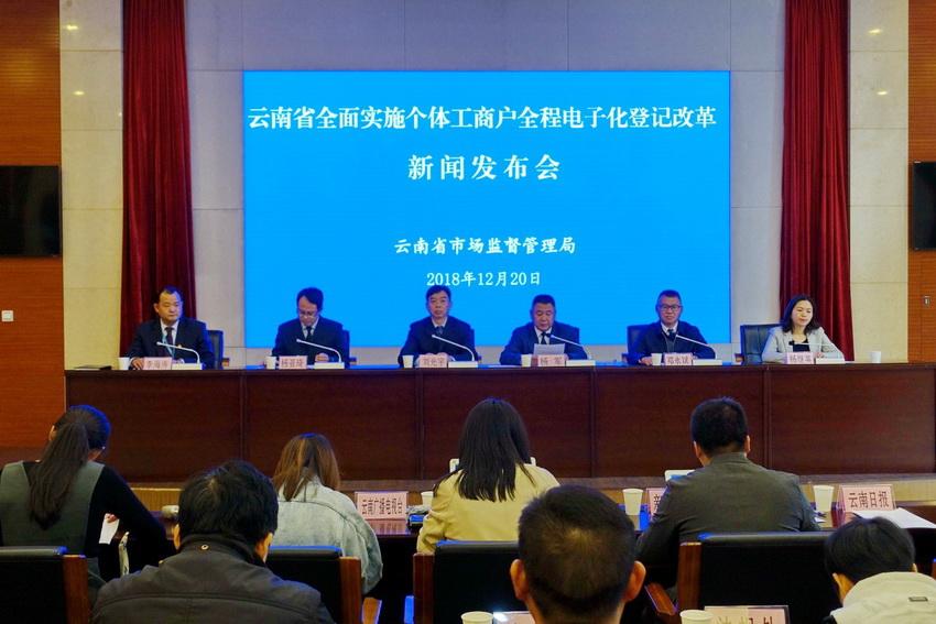 12月20日下午,省市場監(jiān)督管理局召開新聞發(fā)布會,全面實施個體工商戶全程電子化登記改革。省市場監(jiān)管局黨組成員、副局長劉光宇作專題發(fā)布,新華社、云南廣播電視臺、中國網(wǎng)等10家新聞媒體參加了發(fā)布會,昆明市工商局、原省工商局信息中心等負責(zé)人分別回答了記者提問。