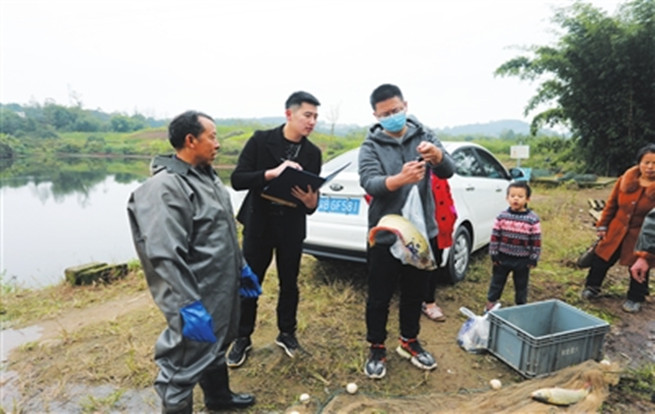 江北區(qū)農(nóng)業(yè)農(nóng)村委工作人員在五寶鎮(zhèn)對即將上市的活魚進行藥品殘留檢測?記者王雪佼?攝