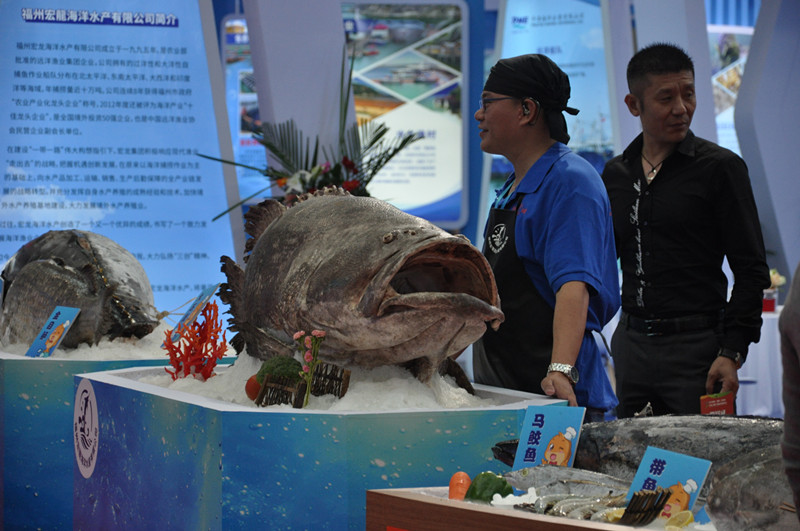 7號(hào)館設(shè)置水產(chǎn)加工展區(qū)、遠(yuǎn)洋漁業(yè)純天然產(chǎn)品展區(qū)、漁業(yè)機(jī)械展區(qū)三大展區(qū),展館面積11000平方米,標(biāo)準(zhǔn)展位達(dá)510個(gè),共計(jì)120家參展企業(yè),一條重達(dá)330斤的巨型石斑魚(yú)吸引了眾多觀(guān)眾駐足,同時(shí),還有一條重達(dá)500斤的金槍魚(yú)現(xiàn)場(chǎng)進(jìn)行解刨。