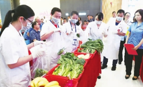 7月10日下午,位于魁奇路地鐵站出口附近新DNA購物中心一樓大堂熱鬧非凡:十位穿著白大褂的食品安全檢測員,正在分別使用儀器對蔬菜的農藥殘留物進行檢測,引來不少市民駐足觀看。