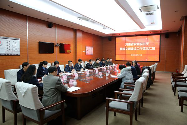 根據(jù)《河南省文明單位評選管理補充規(guī)定》和《關(guān)于對文明單位待遇認定考核的通知》要求,2月21日上午,省直文明辦王勇生主任一行四人到省農(nóng)業(yè)農(nóng)村廳進行文明單位待遇認定考核。省委農(nóng)辦主任、廳黨組副書記、廳長申延平出席匯報會,廳黨組成員、副廳長、機關(guān)黨委書記楊海蛟主持匯報會并做文明單位創(chuàng)建工作匯報,省委農(nóng)辦、省農(nóng)開辦、廳辦公室、機關(guān)黨委、人事處、政法處、工會、機關(guān)服務(wù)中心主要負責(zé)同志參加了會議。