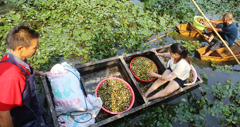 菱角成熟,滿塘清香。近日,河南省光山縣司馬光小鎮(zhèn)升輝合作社迎來了菱角收獲季。