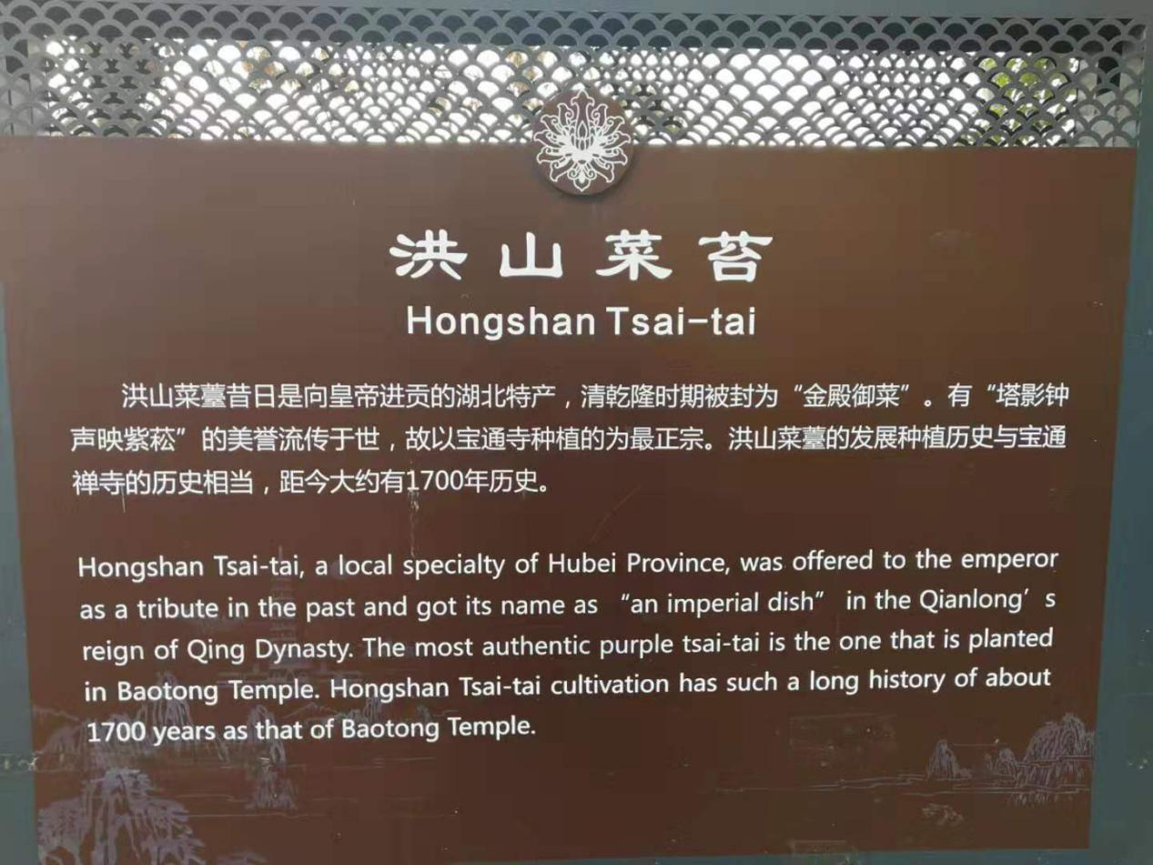 熊召政說,洪山菜薹是古往今來老百姓喜愛的地方標(biāo)志性蔬菜,位于寶通禪寺內(nèi)的幾塊洪山菜薹發(fā)源菜地更是無價之寶,要繼承珍惜這一飽含豐厚歷史的文化遺產(chǎn),做好種植和推廣工作,讓洪山菜薹這一地標(biāo)農(nóng)產(chǎn)品享譽海內(nèi)外。