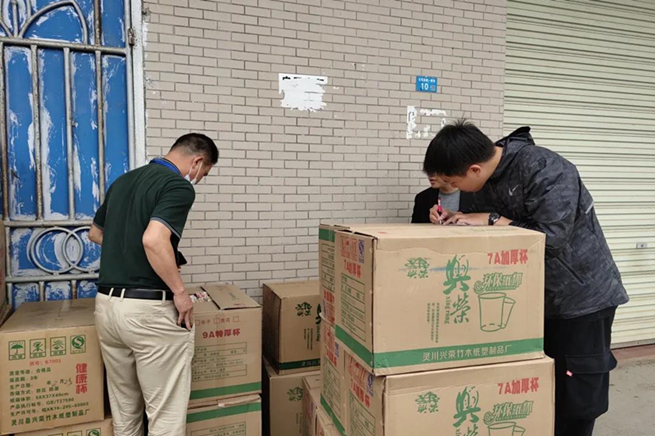 在現(xiàn)場,石塔村石塔西路一橫巷的倉庫儲存著不同規(guī)格的“加厚紙杯”“珍珠奶茶飲管”“水晶餐具”“高透防霧紙碗蓋”等等,均為海南禁止銷售使用的不可降解塑料制品。其中,有一批品名為“PP—120蓋”物品,其生產(chǎn)日期為2021年3月4日。執(zhí)法人員在調(diào)取了進(jìn)貨憑證、銷售憑證及相關(guān)證據(jù)后,對涉案物品進(jìn)行現(xiàn)場查扣。目前案件正進(jìn)一步調(diào)查中。