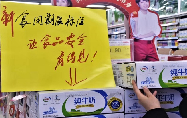 中國食品安全網(wǎng)訊(焦姝敏?記者陳茜)?“請在2020年2月13日前食用?!?2月30日,在西安市未央路人人樂賽高店選購牛奶的市民袁先生,欣喜的發(fā)現(xiàn)常喝的一款乳制品的外包裝箱,增加了這樣的一句標識。他高興的告訴記者,“產(chǎn)品的外包裝上醒目標注了食用期限,我們再也不用費神計算什么時候到保質(zhì)期,對我們老百姓來說,這個標注提醒嘹扎咧(好的意思)。”