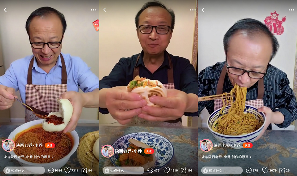 火山小視頻的美食大V,60歲陜西老喬已經(jīng)發(fā)了615條小視頻,積累了520萬粉絲。發(fā)布的每一個(gè)視頻,都能有數(shù)萬個(gè)點(diǎn)贊,上百條評論。這對陜西父子在火山上分享美食教程,將陜西本土風(fēng)味制作向全國擴(kuò)散傳播。不光是火山小視頻,普普通通的老喬父子,年前還被邀請上過央視美食欄目現(xiàn)場教授。