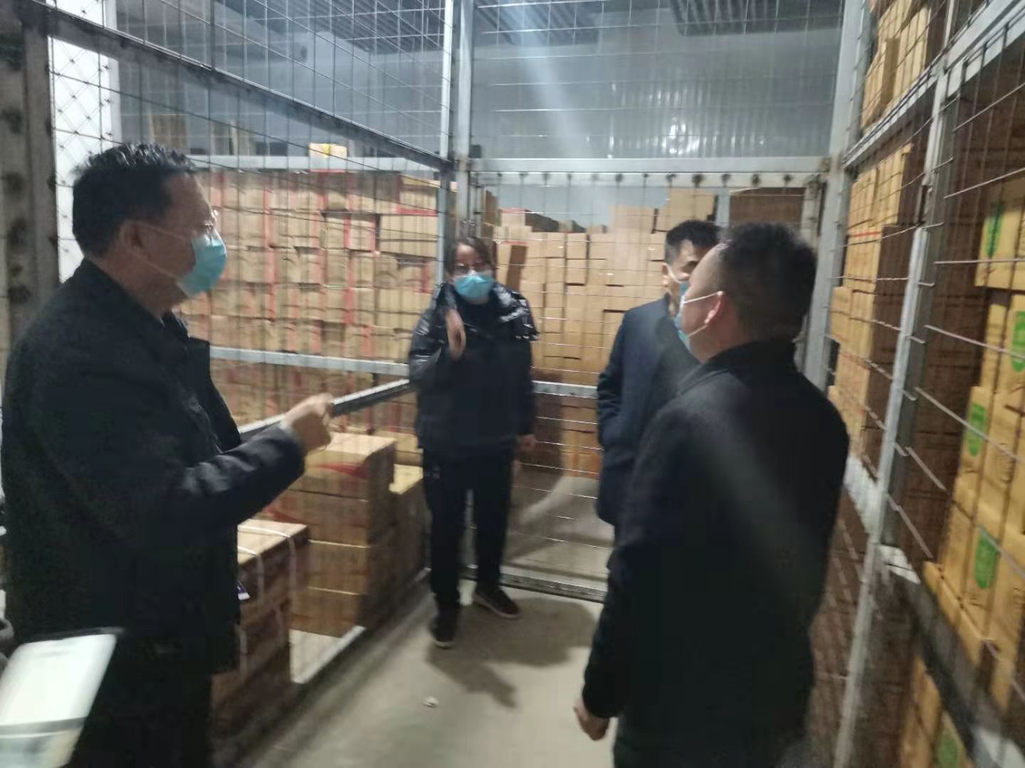 寶豐縣市場監(jiān)督管理局黨組書記局長任朝陽帶領(lǐng)執(zhí)法人員深入到冷庫內(nèi)對冷鏈?zhǔn)称愤M行實地檢查