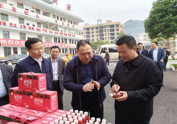 陳飛一行實(shí)地查看了新源食品全封閉的生產(chǎn)線(風(fēng)淋清洗消毒車間、吹瓶車間、灌裝車間、包裝車間)。并詳細(xì)詢問從原料入廠到成品的溯源、生產(chǎn)管理、產(chǎn)品銷售、產(chǎn)品結(jié)構(gòu)、市場布局、食品安全管控等相關(guān)情況,新源食品CEO李節(jié)路一一回答。陳飛說,新化是湖南省人口最多的縣,也是庫區(qū)移民最大的縣,楊梅種植面積有5萬余畝,楊梅稱為“果中瑪瑙”,“望梅止渴”眾人皆知。楊梅面臨著“果期短、保鮮難、運(yùn)輸難、銷售難”的問題,新源食品采用NFC非濃縮還原果汁工藝,通過UHT等科技手段,既保留了楊梅原有的味道和營養(yǎng),又解決了23萬庫區(qū)梅農(nóng)楊梅滯銷難題,為1338戶貧困戶精準(zhǔn)脫貧做了實(shí)實(shí)在在的貢獻(xiàn)。