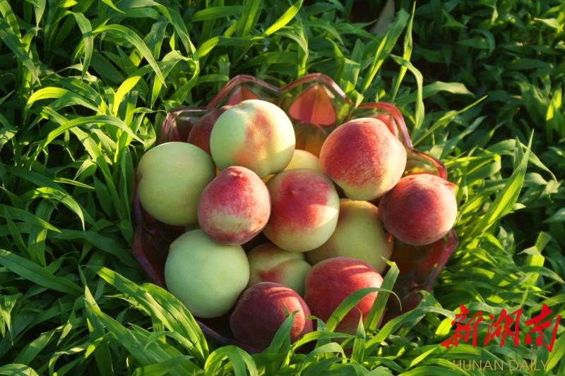 “我們的紅脆桃上市時間比一般的桃子要早10天左右,萱洲紅脆桃是在衡山本地桃種的基礎(chǔ)上,經(jīng)過選育改良、果枝嫁接等方式改良的紅脆桃品種,所產(chǎn)果實具有肉厚、味甘、果大、耐儲藏等特點。品嘗過我們桃子的人都說好吃!”衡山萱洲農(nóng)業(yè)發(fā)展公司劉文峰介紹道。