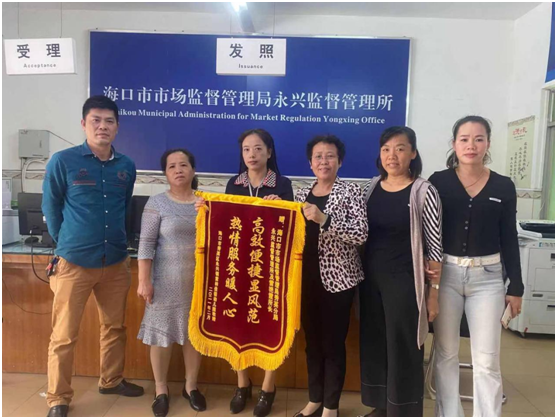 海口市秀英區(qū)永興鎮(zhèn)童林佳話幼兒園為??谑惺袌霰O(jiān)管局秀英分局永興監(jiān)管所送上致謝錦旗