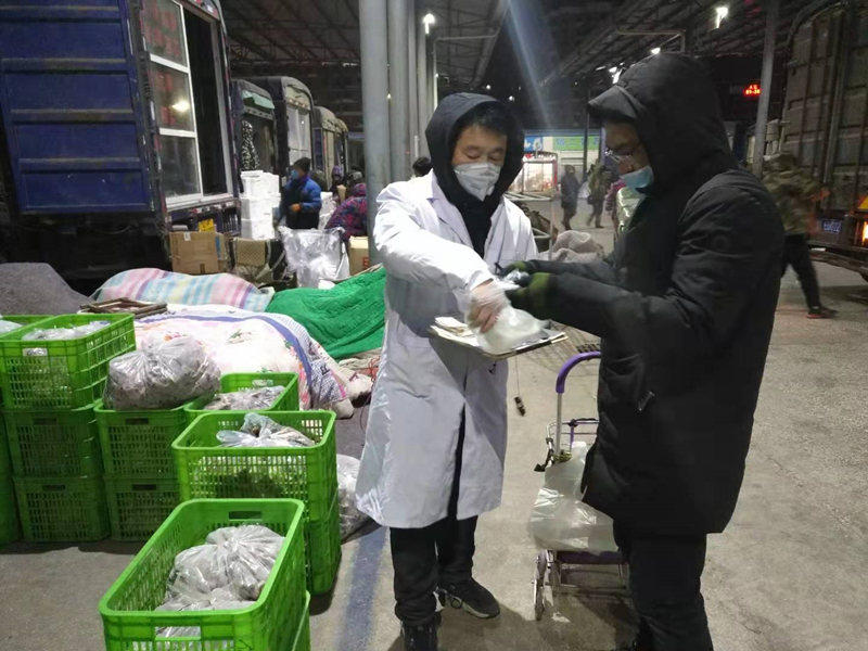 新躍農(nóng)產(chǎn)品批發(fā)市場承擔(dān)著我市80%以上的蔬菜供應(yīng)。疫情防控期間,蔬菜供應(yīng)、價格和食品安全問題就顯得尤為重要。自新型冠狀病毒感染肺炎疫情防控工作開展以來,盤錦市市場監(jiān)管部門抽調(diào)多名骨干,成立了專項檢查組進(jìn)駐市農(nóng)副產(chǎn)品批發(fā)市場,加強督導(dǎo)檢查。一是加強對市場開辦方的監(jiān)管。督促企業(yè)落實主體責(zé)任,加強疫情防控工作落實,開展疫情宣傳,對入市人員進(jìn)行體溫監(jiān)測,對入市車輛進(jìn)行消毒。二是保障供應(yīng)穩(wěn)定價格。約談市場經(jīng)營大戶,要求疫情期間既保證蔬菜供應(yīng),又要穩(wěn)定蔬菜價格,禁止疫情期間抬高物價,市場開辦方每日上報蔬菜的供應(yīng)量、價格等情況。三是加強食品安全監(jiān)管。監(jiān)督檢查第三方檢測機構(gòu)加強入市商品檢測工作,嚴(yán)格開展入商品市檢測,不漏一戶,不漏一品,留存檢測信息,發(fā)現(xiàn)檢測不合格的,及時報告市場開辦方和市場監(jiān)管部門,立即退