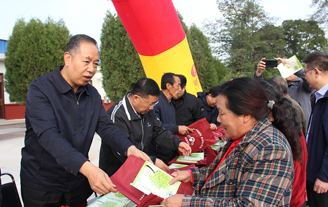 山西省市場監(jiān)管局黨組成員、副局長王德立向貧困戶發(fā)放慰問品