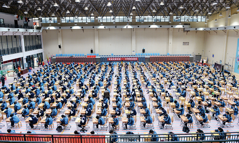 圖為長郡湘府中學學生在體育館內就餐。